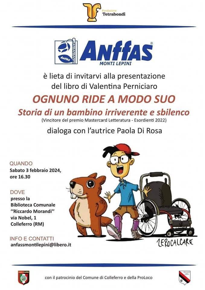 Anffas Monti Lepini - Associazione Nazionale Famiglie di Persone con Disabilità Intellettiva e/o Relazionale - con il patrocinio del Comune di Colleferro e della ProLoco città di Colleferro, vi invita alla presentazione del libro “Ognuno...