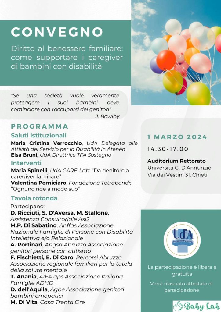 Convegno “Diritto al benessere famigliare: come supportare i caregiver di bambini con disabilità .