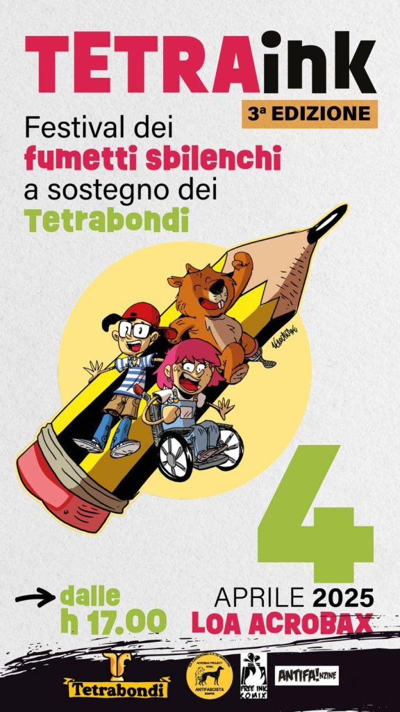 Il TETRAINK torna con tutto il suo carico di bellezza, un Festival di Fumetti Sbilenchi, che vedrà la partecipazione di tantissimi artisti, attori, amici e sostenitori che metteranno la loro arte al servizio dell’inclusività universale!