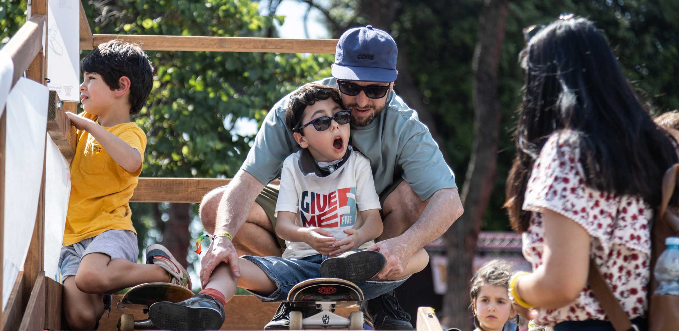 Grazie alla condivisione, alla socialità e allo scambio di competenze, costruiremo in pochi attimi l’inclusività universale : con lo skatepark itinerante avremo la possibilità di farlo nello spazio pubblico, nelle piazze, nei parchi, così che sia esempio e inizio di un nuovo tipo di città permeabile, accessibile, inclusiva, universale. Famiglie, giovani, caregiver, skateboarder e rider WCMX (BMX in carrozzina) sono tutti invitati a provare le nostre rampe accessibili per avvicinarsi agli urban board sport paralimpici e vivere la meraviglia del mescolarsi, ritrovarsi insieme, scoprire che ogni corpo ha desiderio di adrenalina, velocità, divertimento e condivisione.